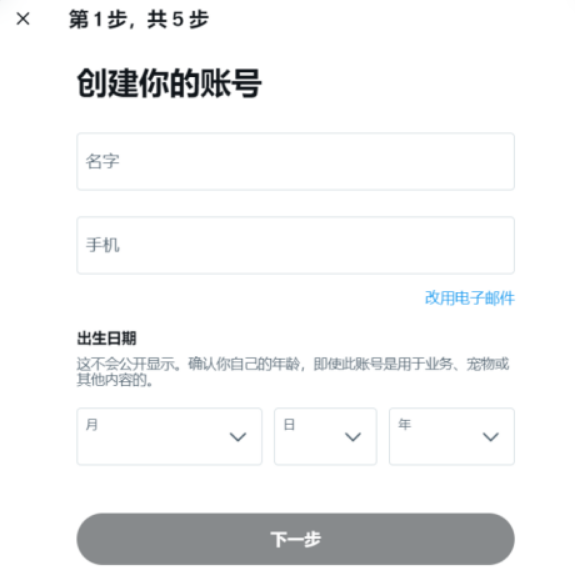 推特账号注册: