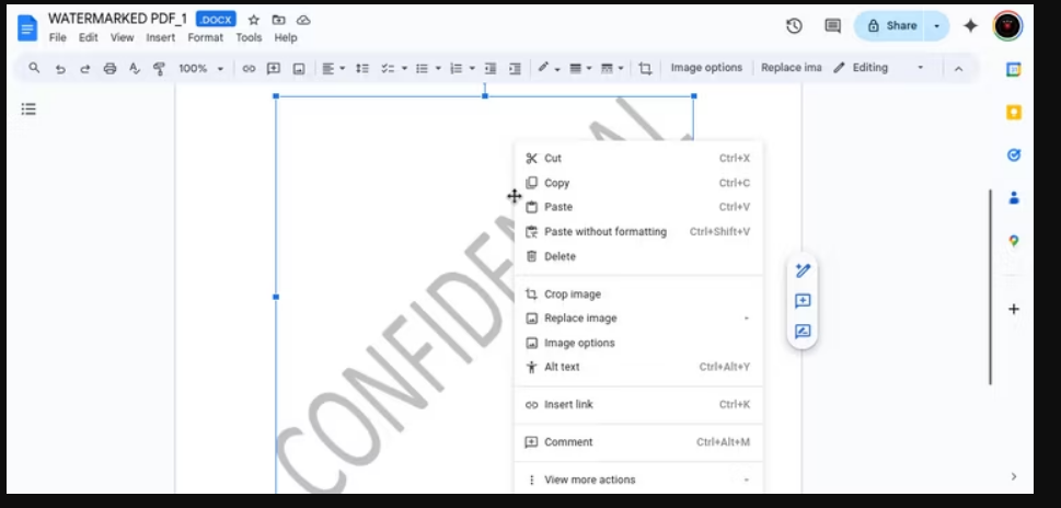 现在您已经准备好文件,下面介绍如何从 Google Docs 中的 PDF 中删除水印:
