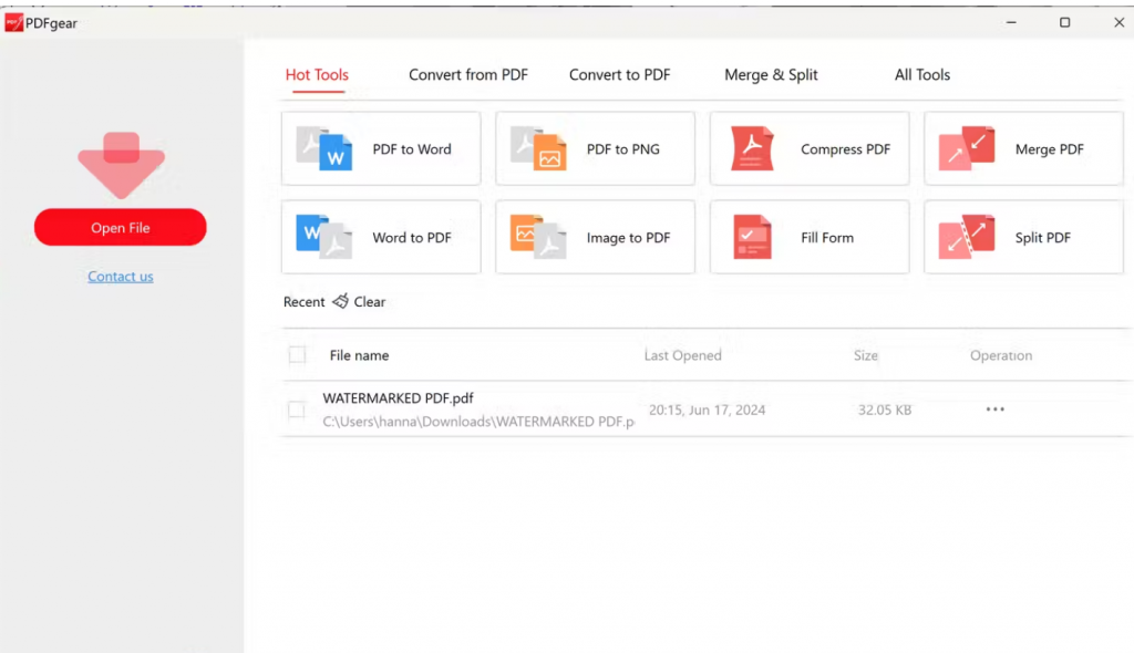 从 PDFGear 网站运行安装程序后,您可以按照以下步骤从 PDF 中删除水印: