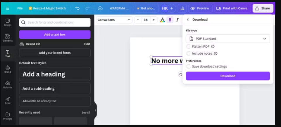 如何使用 Canva 去除 PDF 中的水印