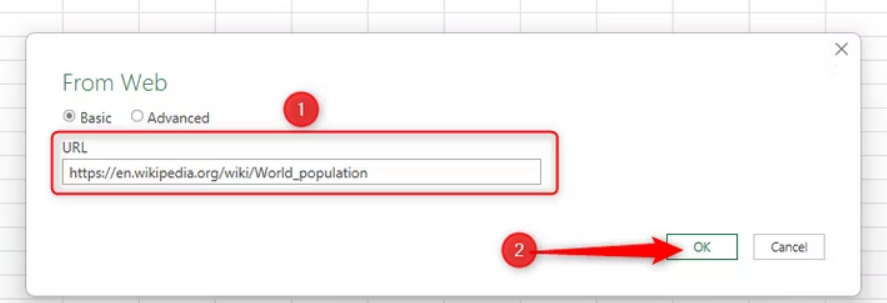 在 Web 浏览器中,转到要导入的数据所在的网页,然后复制(使用键盘快捷键 Ctrl+C)URL。我们将使用维基百科上的世界人口页面作为示例。