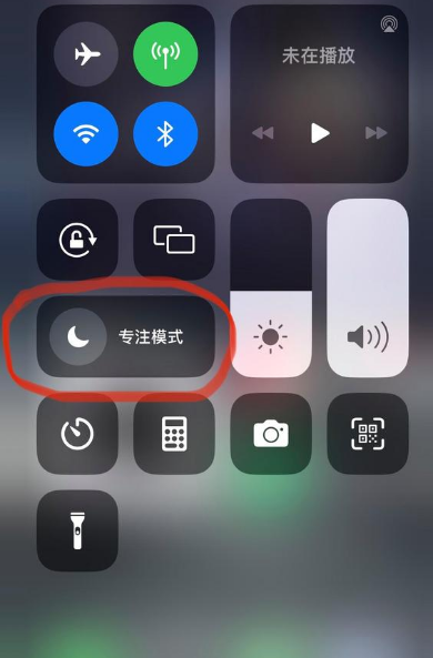 在控制中心界面中,您会看到各种快捷操作图标,专注模式图标通常位于其他控制按钮的中间。专注模式图标类似于一个眼睛在一个圆圈内。请注意,该图标可能会因为您的手机当前是否处于专注模式而有所不同。